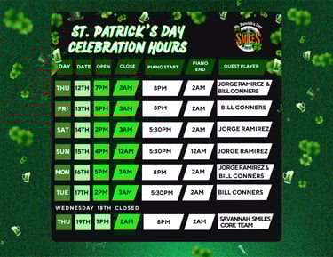 Savannah Smiles is a very lively dueling piano bar in Savannah, Georgia where talented performers play songs, joke around, and create a fun atmosphere for all guests.