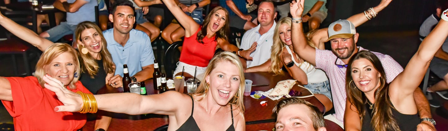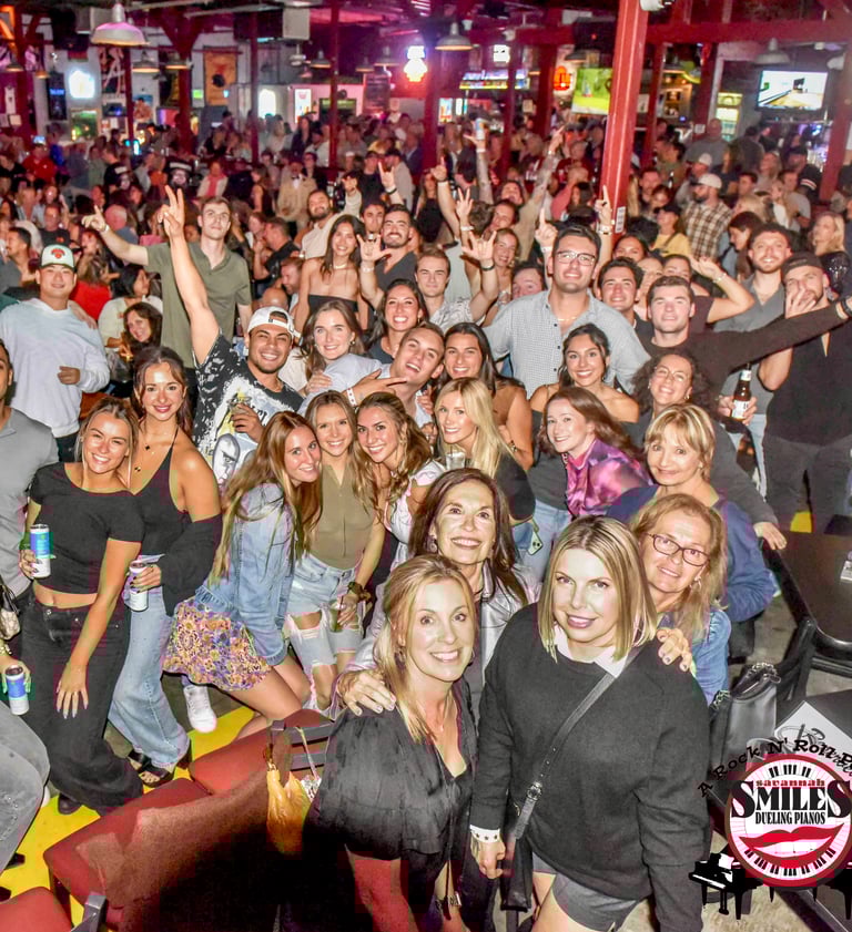 Guaranteed seating, table service, elevated party favors, unlimited in/out privileges, a midnight champagne toast, and access to the dueling pianos show from 8 PM–2 AM.