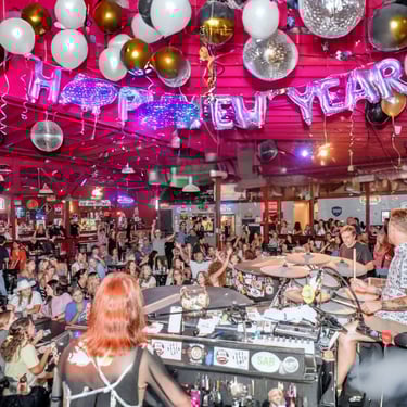 A high-energy NYE celebration with guaranteed seating, champagne toast, and dueling pianos until 2 AM.
