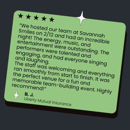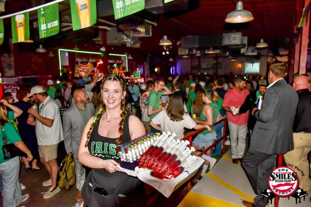 Smiles Pianos is where the party hits different! Whether you're planning a birthday bash, wedding after-party, corporate hang, or just a night out with the crew, we bring the vibes, the energy, and the best dueling pianos show in town. Located in the heart of downtown Savannah, our spot is all about nonstop music, crowd-hyped performances, and an atmosphere that keeps you singing, laughing, and vibing all night. Pull up, grab a drink, and let’s make some memories!