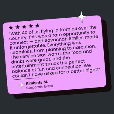 Private Events Availability: Savannah Smiles is open for private events from Tuesday through Saturday. Private events may be scheduled outside these days and hours upon request, subject to availability and advance coordination.